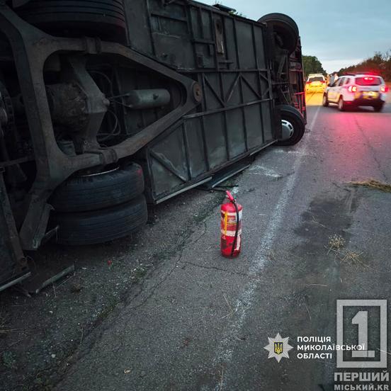 На трасі Н-11, сполученням Дніпро-Кривий Ріг-Миколаїв, у ДТП потрапив автобус. У салоні були діти.