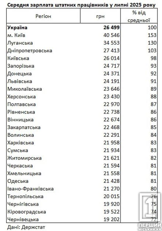 Найвища ЗП у столиці - 40 546 грн. Найнижча демонструється у Чернівецькій області — 19 202 грн. На Дніпропетровщині маємо 27413 грн.