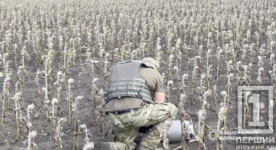 Ворожий боєприпас знайшли у полі соняшника у Криворізькому районі. Він становив загрозу як для місцевих мешканців, так і для сільськогосподарської техніки.