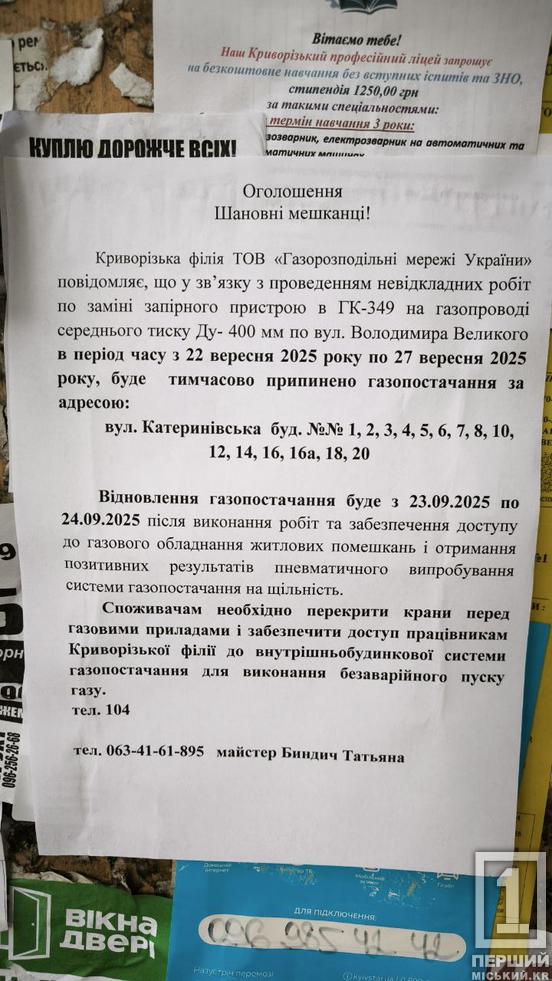 Перекривайте крани та забезпечте доступ фахівців: Саксаганський район Кривого Рогу на кілька днів залишиться без газу