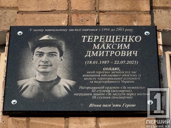 У криворізькій гімназії №108 відкрили одразу два меморіали полеглим воїнам-випускникам. Максиму Терещенку та Денису Тимченку.