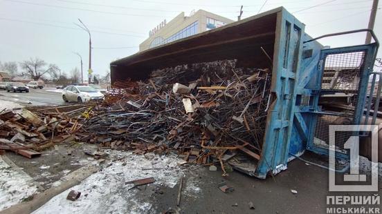 У Кривому Розі на вулиці Кобилянського стався інцидент з фурою. Її причеп перекинувся на бік.