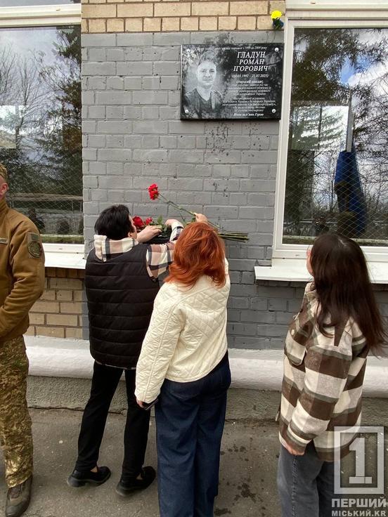 У Криворізькій гімназії №62 увічнили пам’ять свого випускника та мужнього захисника Романа Гладуна. 7 квітня на подвір’ї закладу відкрили меморіальну дошку, аби кожен учень знав ім’я героя, який віддав життя за їхній спокій.