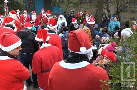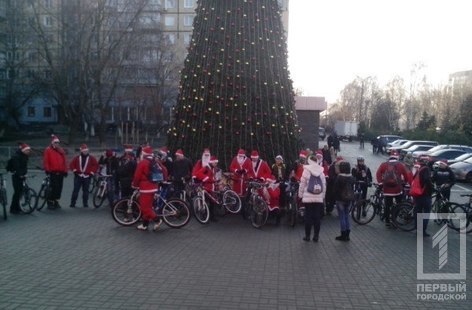 Около 80-ти велосипедистов в новогодних костюмах – такое праздничное необычное зрелище могли наблюдать местные жители на улицах Кривого Рога 24 декабря. Организация «Ukrainian вike family» уже в который раз устроила оригинальный флешмоб – «полк» Дедов Морозов на велосипедах отправился дарить горожанам чудо и подарки.