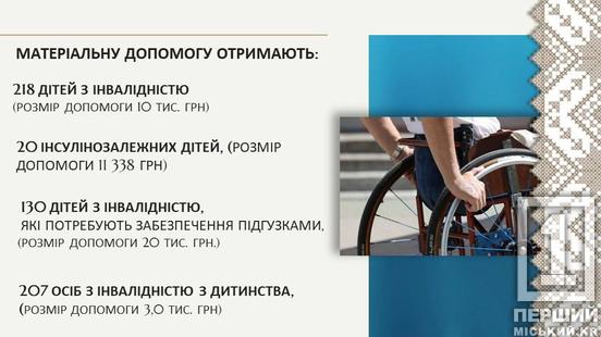 Ольга Калугіна, заступник директора департаменту соціальної політики сказала: «Місто завжди підтримувало та продовжує підтримувати родини, які виховують дітей з інвалідністю або мають осіб з інвалідністю з дитинства. Всі виплати та розміри допомог для цієї категорії збережено, жодної виплати не зменшено та не скорочено. У серпні допомогу отримають: 218 дітей з інвалідністю у розмірі 10 тис. грн. 20 інсулінозалежних дітей (розмір допомоги 11 338 грн),130 дітей з інвалідністю, які потребують забезпечення засобами гігієни (розмір 20 тис. грн), 207 осіб з інвалідністю з дитинства (розмір 3 тис грн). З початку року таку допомогу отримали 3860 осіб з інвалідністю та дітей з інвалідністю на загальну суму 28,8 млн грн».