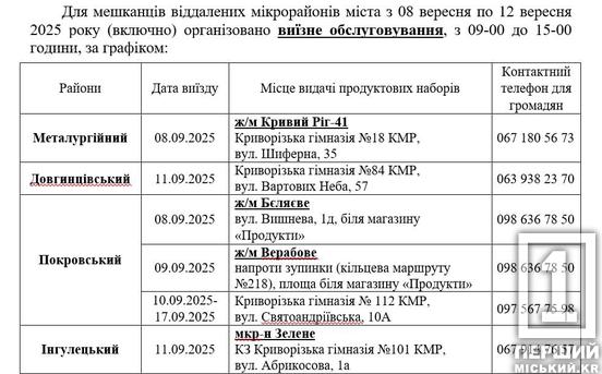 З питань видачі наборів або доставки за місцем перебування можна звернутися безпосередньо до пунктів видачі продуктових наборів за контактними телефонами, або Контакт-центру м. Кривого Рогу за номером 1520 (для операторів Київстар) та 499-1520 (для інших операторів) або на сайт