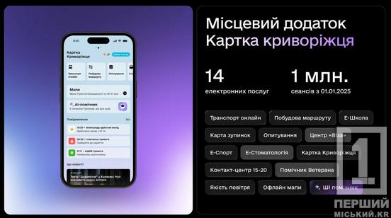 Одним із наших найуспішніших проєктів є багатофункціональна «Картка криворіжця». Вона об’єднує транспорт, медицину, освіту, соціальну підтримку та адмінпослуги. Ми запустили зручний мобільний застосунок «Картка криворіжця», який додатково об’єднує: еШколу, контакт-центр 15-20, моніторинг повітря та інтерактивні карти.