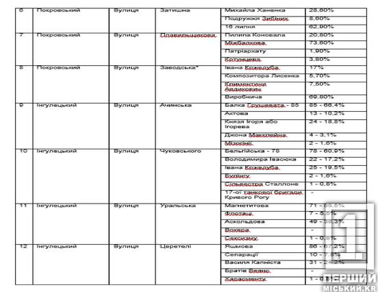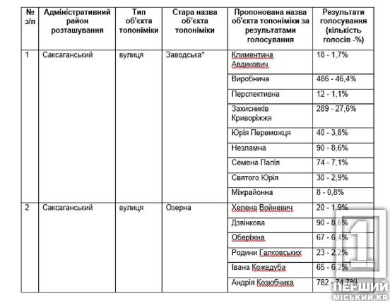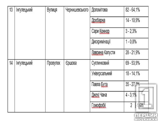 Стали відомі результати громадського обговорення з перейменування ще 12 вулиць та парку в Кривому Розі