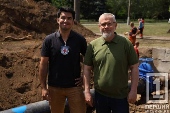 Місто, у партнерстві з Міжнародним комітетом Червоного Хреста (ICRC), надало «Кривбасводоканалу» труби, спецтехніку, запірну арматуру та інше обладнання для заміни трубопроводів, зокрема, на ділянці в Інгулецькому районі, довжиною 5,4 км, аби забезпечити стабільне водопостачання для близько 300 тисяч жителів – це мешканці Інгульця та інших районів, які знаходяться на одній лінії.