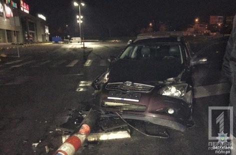 Ночью в Кривом Роге иномарка на парковке снесла столб