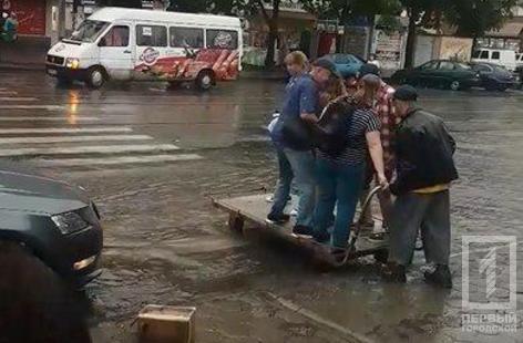 22 мая в Кривом Роге прошёл ливень. После сильного дождя затопило улицы. Из-за этого горожанам приходится либо обходить воду места или идти через сильные потоки.