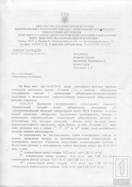 Лабораторные исследования воздуха в микрорайонах Восточный-1, 2, 3 показали превышение уровня диоксида серы, формальдегида, фенола, аммиака и пыли. Результаты передали в Государственную экологическую инспекцию Украины и Днепропетровской области, прокуратуру, Госпродпотребслужбу Украины. Об этом информирует отдел прессы и информации Криворожского горсовета.