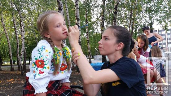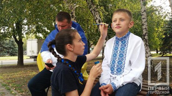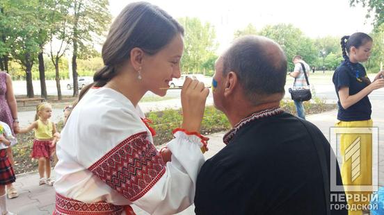 Для того чтобы отпраздновать День Флага, криворожане собрались возле фонтана рядом с горсоветом на площади Молодёжной. Там они вместе со своими детьми нанесли себе на лица изображения украинской символики в цветах национального флага. Это и знаменитый трезубец, который изображён на Гербе нашей страны, и различные стилизованные цветы, и птицы.