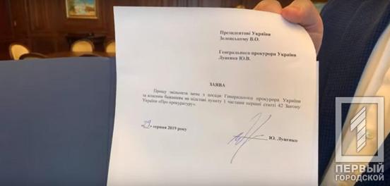 29 августа, в день первой работы Верховной Рады IX созыва, Генеральный прокурор Юрий Луценко написал заявление об отставке. И подписал его в прямом эфире во время интервью журналисту Дмитрию Гордону.