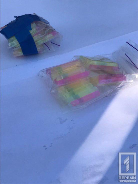 16 октября оперуполномоченные Криворожского отдела полиции задержали 25-летнего мужчину у его собственной машины. При осмотре в карманах у подозреваемого нашли 100 запаянных с двух сторон трубочек объёмом приблизительно по 25-30 мм с веществом светло-коричневого цвета. Они были расфасованы по полиэтиленовым пакетам. Во время осмотра автомобиля «ВАЗ» полицейские обнаружили ещё 1203 трубочки с наркотиком. Они были спрятаны под резиновым ковриком у места водителя, и под задним сидением машины.