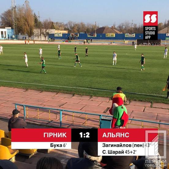 10 ноября на стадионе «Шахта КЖРК» состоялся матч 20-го тура чемпионата Украины по футболу. В противостоянии сошлись местный ФК «Горняк» и липоводолинский «Альянс». Судьба матча решилась ещё в течение первой половины игры, «Горняк» уступил со счётом 1:2.