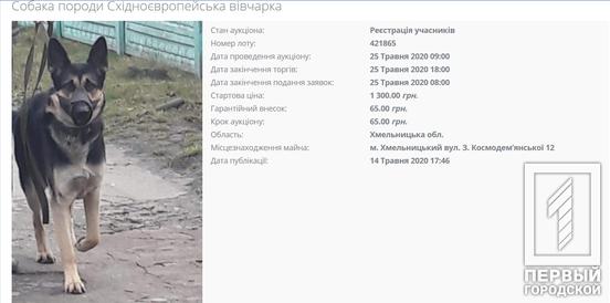 Овчарка по уценке. Хмельницкого четвероного друга выставляют повторно. Первая цена – 1950 грн не нашла своего покупателя. 25 мая лот №421865 выставят за 1300 грн.