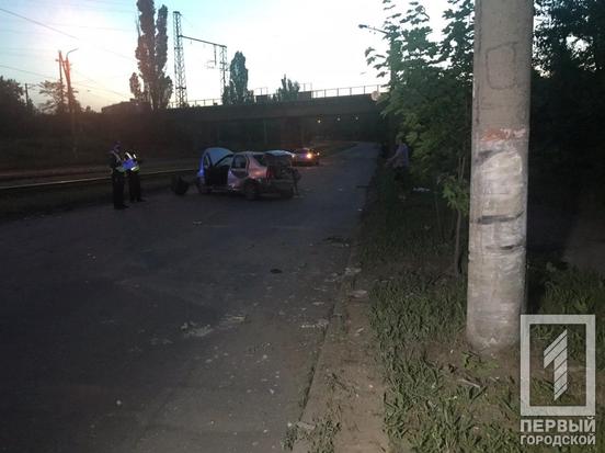 В Кривом Роге автомобиль снёс несколько деревьев и врезался в столб