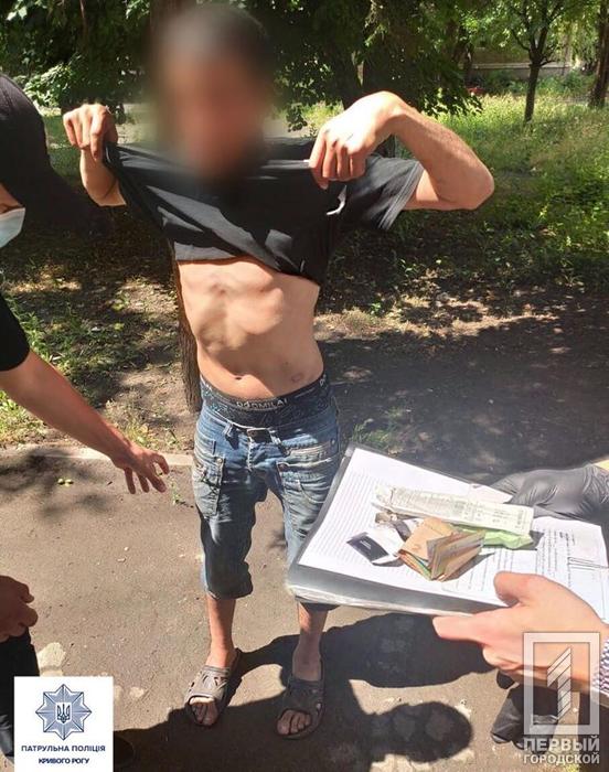 Около 12:30 полицейские остановили мужчину на улице Пирогова. Во время общения гражданин признался, что при себе имеет «травку». На место инцидента прибыла следственно-оперативная группа Криворожского отдела полиции. В присутствие свидетелей они изъяли у мужчины два слип-пакета с «каннабисом».