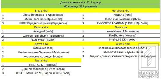 19 июня завершился 22-й турнир Детской шахматной лиги. Он проходил в режиме онлайн. В семи лигах чемпионата в составе 66 команд участвовали 587 шахматист из 20 областей Украины и Киева. Возрастные категории участников – до 16 лет.