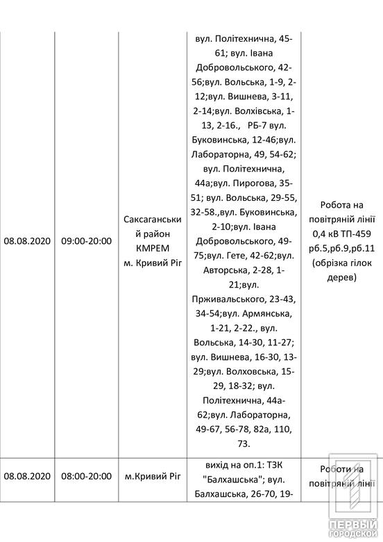 В этот период ремонтные работы затронут несколько районов Кривого Рога. График отключения электроэнергии можно просмотреть ниже.