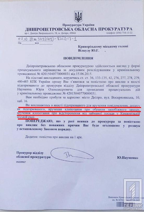Кандидат в мэры и действующий глава Кривого Рога Юрий Вилкул записал экстренное обращение к горожанам. Он получил сообщение от Днепропетровской областной прокуратуры, которое может лишить криворожан права самим сделать выбор на предстоящем голосовании, а его – отстранить от предвыборной гонки.