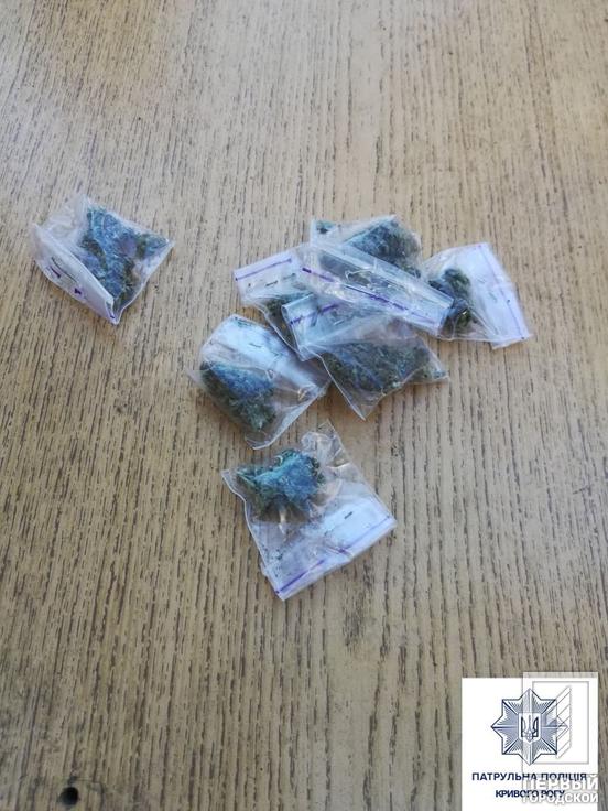 В субботу, 5 декабря, правоохранители остановили в Долгинцевском районе подозрительного человека. Во время поверхностной проверки патрульные обнаружили у мужчины семь слип-пакетов с веществом зеленого цвета растительного происхождения. Также в этом районе сотрудникам полиции на ещё одного вероятного распространителя запрещенного указали местные жители. Мужчину отыскали и осмотрели его карманы и личные вещи. Во время поверхностной проверки криворожанин признался, что носит с собой пять трубочек с наркотиками.