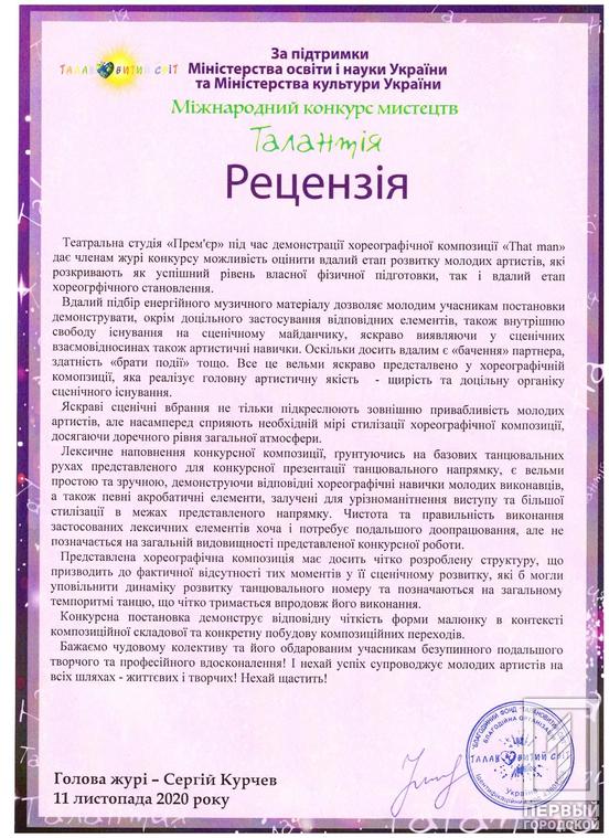 Студия «Премьер» из Кривого Рога заняла призовые места на всеукраинском и международном фестивалях