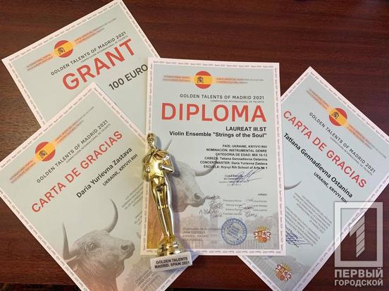 Криворожские юные таланты поучаствовали в конкурсе искусств Golden Talents Of Madrid 2021. Подопечные музыкальной школы №5 и школы искусств №1 заняли призовые места. Об этом сообщается на страницах образовательных заведений в соцсети.