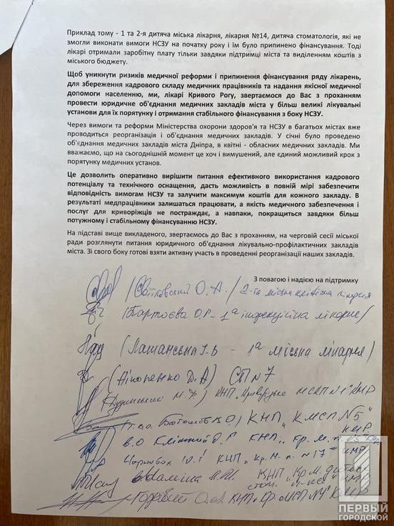 Напомним, 11 мая 26 главных врачей больниц Кривого Рога обратились к мэру Константину Павлову с просьбой провести юридическое объединение медучреждений города для их спасения и получения стабильного финансирования со стороны НСЗУ. Как отметили в своем обращении медики – с заключением договоров серьёзные трудности возникают на постоянной основе. А это ставит под угрозу их фактическое существование и сохранение рабочих мест медицинских работников. Пример тому – 1-я и 2-я детская городская больница, больница №14, детская стоматология, которые не смогли выполнить требования НСЗУ на начало года, и им было прекращено финансирование. Тогда врачи получили зарплату только благодаря поддержке города и выделенным из городского бюджета средствам.