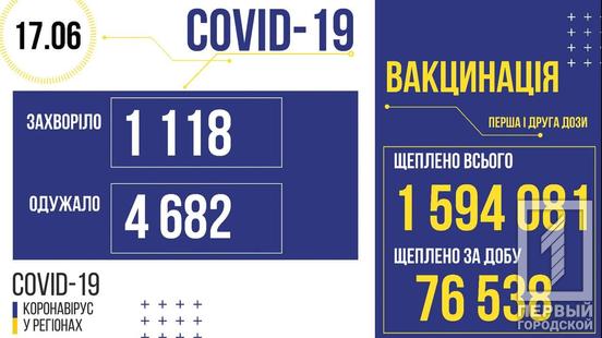 По состоянию на 8:00 17 июня в Украине зарегистрировали 2 227 225 случаев заражения коронавирусом, 51 902 человека умерли, 2 145 660 выздоровели. За минувшие сутки COVID-19 обнаружили у 1188 человек, в том числе у 62 детей и у шести медиков, 55 пациентов скончались, 4 682 вылечились.