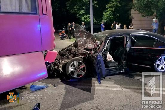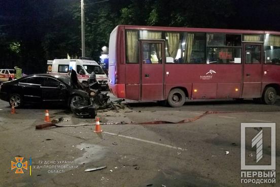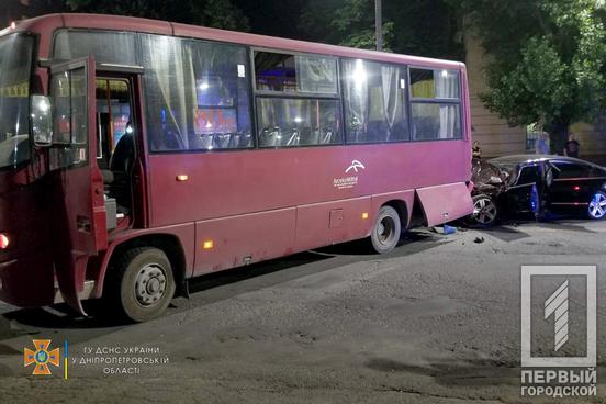 В Кривом Роге ночью легковой автомобиль столкнулся с автобусом: есть пострадавшие