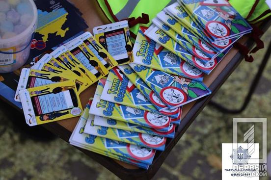 Акцию для местных жителей провели школьные офицеры полка патрульной полиции. Маленьким криворожанам в возрасте от четырёх до 10 лет и их родителям рассказали правила безопасности дорожного движения. Детей учили с помощью игры - они рисовали и тем самым запоминали дорожные знаки. В это время взрослые попытались на себе действие стимулятора алкоочков чтобы убедиться, что садиться за руль под действием алкоголя - крайне опасно. Кроме того, в память о встрече с блюстителями порядка участникам акции вручили книгу «Твоя безопасность».