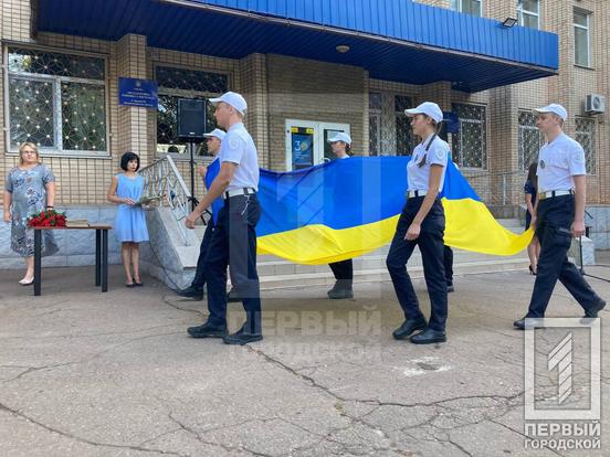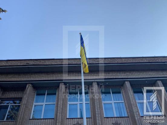 Возле Металлургического райсовета Кривого Рога торжественно подняли сине-желтый флаг и поздравили выдающихся деятелей района
