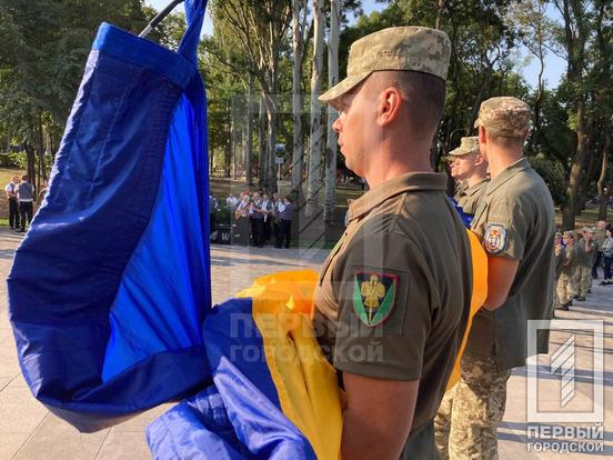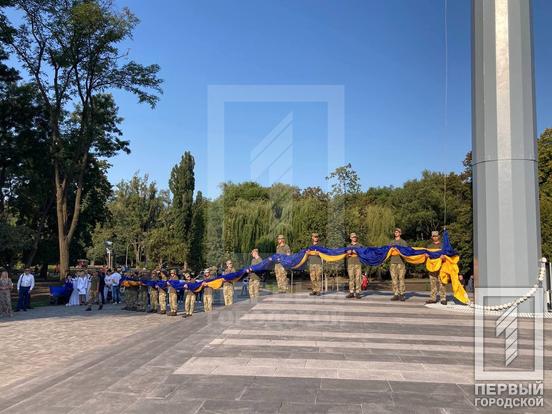 На флагшток под звуки государственного гимна подняли флаг размером 14 на 18 метров. Право закрепить флаг на флагштоке получили военнослужащие, в том числе из 17-й отдельной Криворожской танковой бригады. Одновременно с криворожским флагом сине-жёлтые полотна подняли во всех городах и сёлах Украины.