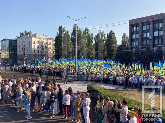 На торжественное поднятие государственного флага на самый высокий флагшток съехались люди со всех районов города. Многие из них были одеты в вышиванки и держали в руках голубые и жёлтые шарики, а также государственные флаги. Среди присутствующих - работники горисполкома и райисполкомов, председатели районных советов, священнослужители, военнослужащие воинских частей Криворожского гарнизона, представители общественных организаций и предприятий, ветеранских советов.