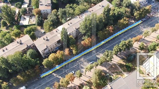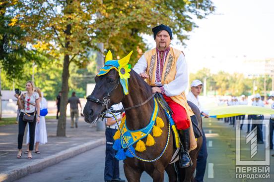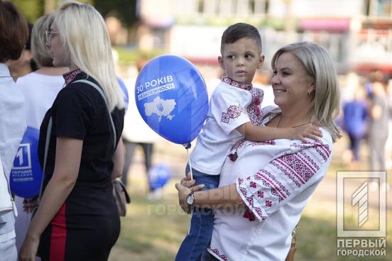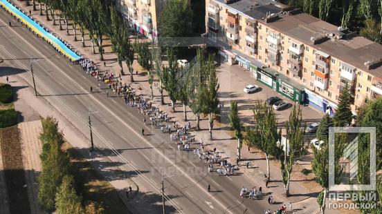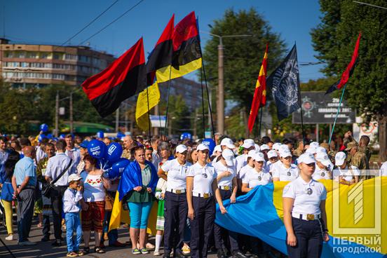 24 августа в 8:30 горожане собрались у Георгиевской колокольни, куда пришли криворожские семьи в национальных нарядах. «Первый Городской» телеканал для поднятия настроения всем желающим вручил небольшие презенты - праздничные воздушные шарики, а затем колонна с 1500 горожан сопровождали 150-метровый сине-жёлтый флаг, символизирующий независимость, свободу и боевой дух именинницы - Украины, которой исполнилось 30 лет.