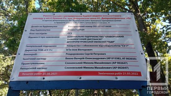 15 сентября на строительной площадке нового корпуса Криворожского онкодиспансера, что в Долгинцевском районе города, провели выездное рабочее совещание. В новом корпусе планируют поместить диагностическое отделение, которое вместит 100 коек. К тому же, в существующем корпусе онкодиспансера модернизируют отделения для химиотерапии и радиотерапии, приёмную и комнаты отдыха, реализуя проект совместными усилиями инвесторов и городских властей.