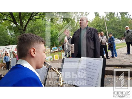 Образцовый духовой оркестр «Портрет» в парке Богдана Хмельницкого под руководством Олега Калюжного выступил преимущественно с народными композициями. Концерт длился почти полтора часа на входе в парк Богдана Хмельницкого, что находится на проспекте Металургов.