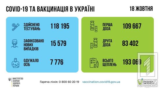 18 октября от коронавируса привили 193069 граждан. За все время кампании по вакцинации в Украине первую дозу получили 8065760 человек, а вторую дозу - 6573564.