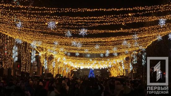 Возле театра разместили главную елку Центрально-Городского района. Вокруг нее в ожидании праздника собралось тысячи горожан с детьми. Малышы охотно фотографировались с аниматорами, а на «разогреве» перед отсчетом до зажигания новогодних огней перед публикой выступил коллектив барабанщиц с зажигательным номером. Театр мод «Дебют» устроил дефиле в нарядах с известными криворожскими локациями под попурри «Этот город самый лучший город на земле». А изюминкой стало огненное шоу.