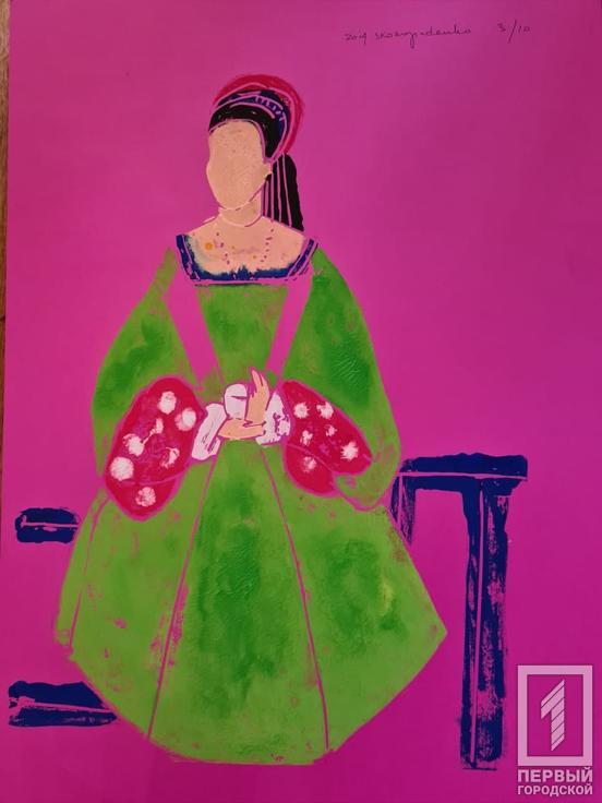 В секции Works on paper («Работа на бумаге») выставили четыре работы уроженки Кривого Рога Зои Скоропаденко. Это линогравюры на бумаге из серии «Почитатели кофе» (Сoffee drinkers). Две из них довольно масштабные – портрет английской королевы Екатерины Перр и британского композитора Томаса Адеса. Ещё двумя работами криворожанки стали портреты аристократов ІХХ века. Впервые работы этой серии показали ещё в 2019 году в Лос-Анджелесе.