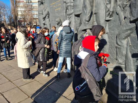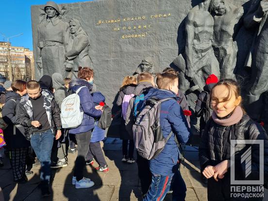 21 февраля работники городского историко-краеведческого музея в рамках проекта «По местам боевой славы» провели экскурсию для учащихся седьмых классов криворожских школ №26 и №103, которые находятся в Металлургическом районе. Сначала дети просмотрели фильм «Город в огне» в видеогалерее, который находится внутри цветочных часов, а затем прошлись к памятным знакам, где могли послушать информацию о защитниках родного города и его освобождении в годы Второй мировой войны.
