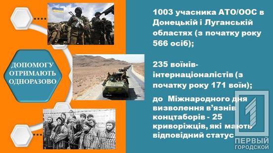И. о. городского главы Кривого Рога Юрий Вилкул отметил: «Восьмой год работает комплексная Программа социальной поддержки участников АТО/ООС и членов их семей. Она охватывает широкий спектр поддержки: от оказания помощи в оплате услуг ЖКХ, лечения, оздоровления до выплат ежемесячного единовременного пособия. Кроме того, продолжается выплата помощи детям, пострадавшим в результате военных действий и вооруженных конфликтов. Всего детей с таким статусом у нас 415. В марте по 5 000 гривен получит 32 ребенка. В целом с начала года такую помощь получил 41 ребенок».
