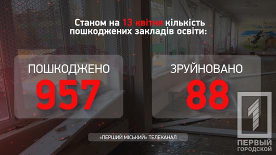 Кроме того, рашисты продолжают обстреливать не только военные объекты, но и гражданские. Так, с начала войны из-за бомбардировок и обстрелов российскими военнослужащими повреждено уже 957 учебных заведений, из которых 88 – разрушены полностью.
