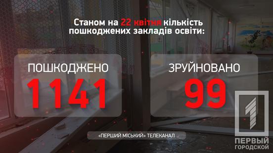 Кроме того, российские военные продолжают обстреливать гражданскую инфраструктуру. Так, почти за два месяца войны из-за бомбардировок и обстрелов оккупантами повреждено уже 1 141 учебное заведение, из которых 99 – разрушено полностью.