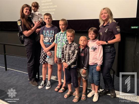 Так, патрульные Кривого Рога пригласили маленьких переселенцев на кинопоказ.