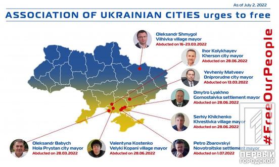 По состоянию на 2 июля в плену военных России находятся восемь городских, сельских и поселковых голов, в частности: