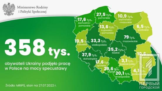Миллионы граждан выехали из Украины из-за войны, развязанной рашистами. Большинство беженцев приютило соседнее государство – Польша, которое поддерживает пострадавших от войны наших соотечественников, предоставляя им жилье, бесплатную медицину, образование и работу. По состоянию на 27 июля с 24 февраля в Польше нашли работу 358 тысяч украинцев. Отмечается, что больше всего трудоустроенных в Мазовецком воеводстве - 79 тысяч человек, Нижнесилезском - 37,9 тысячи, Лодзьком - 35,2 тысячи и Великопольском - 33,3 тысячи.