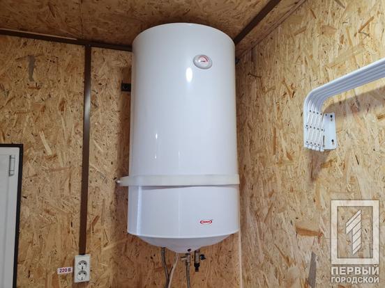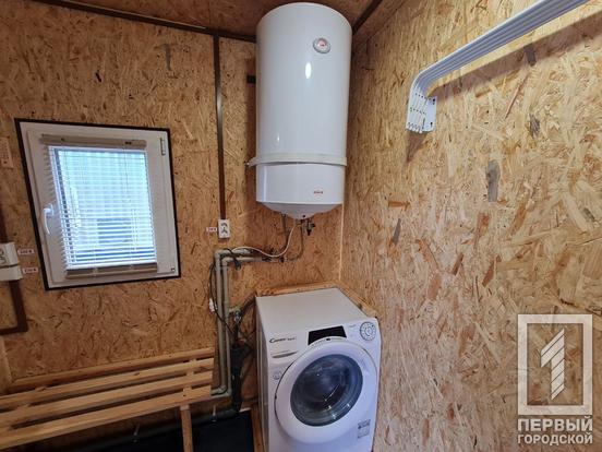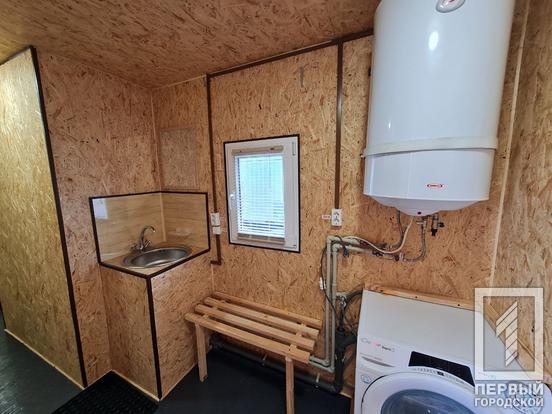 В каждом комплексе есть три душевых, умывальник, бойлер на сто литров воды, стиральная машина. Всего в запасе 1 300 л воды, так что помыться могут 10 военных. Для нагрева воды подходит и электрогенератор, и буржуйка. В любых условиях танкисты смогут удовлетворить свои гигиенические потребности.